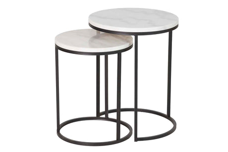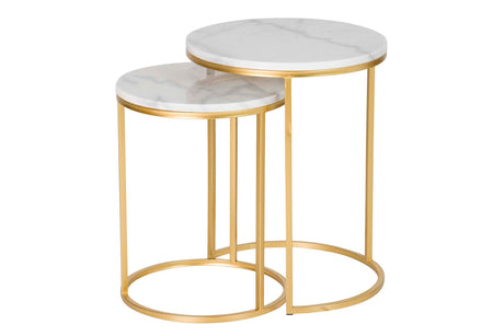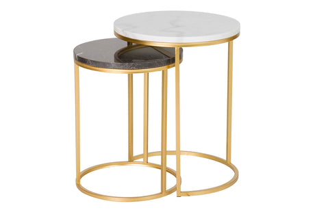 SET 2 MESAS METAL MÁRMOL 60x60x41 50x50x38 CM