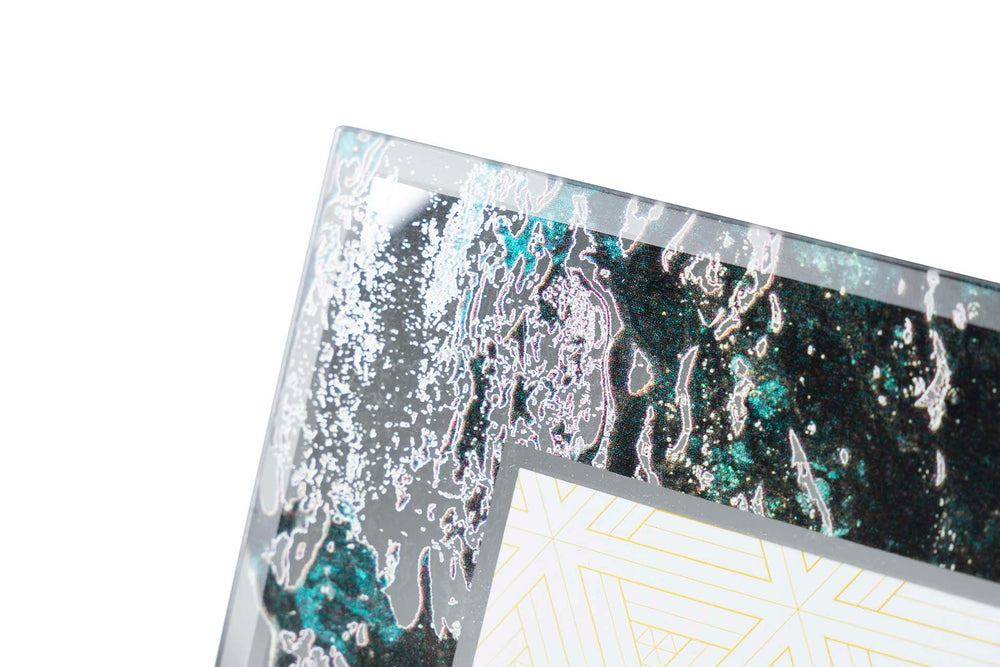 PORTAFOTOS CRISTAL IMPRESION NEGRO-DORADO 10x15CM