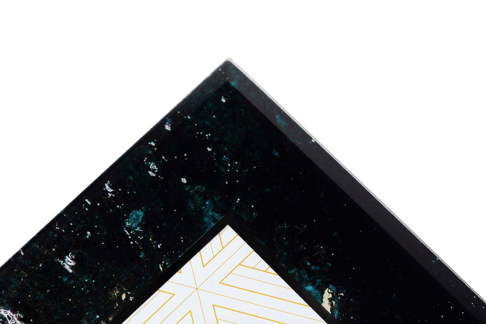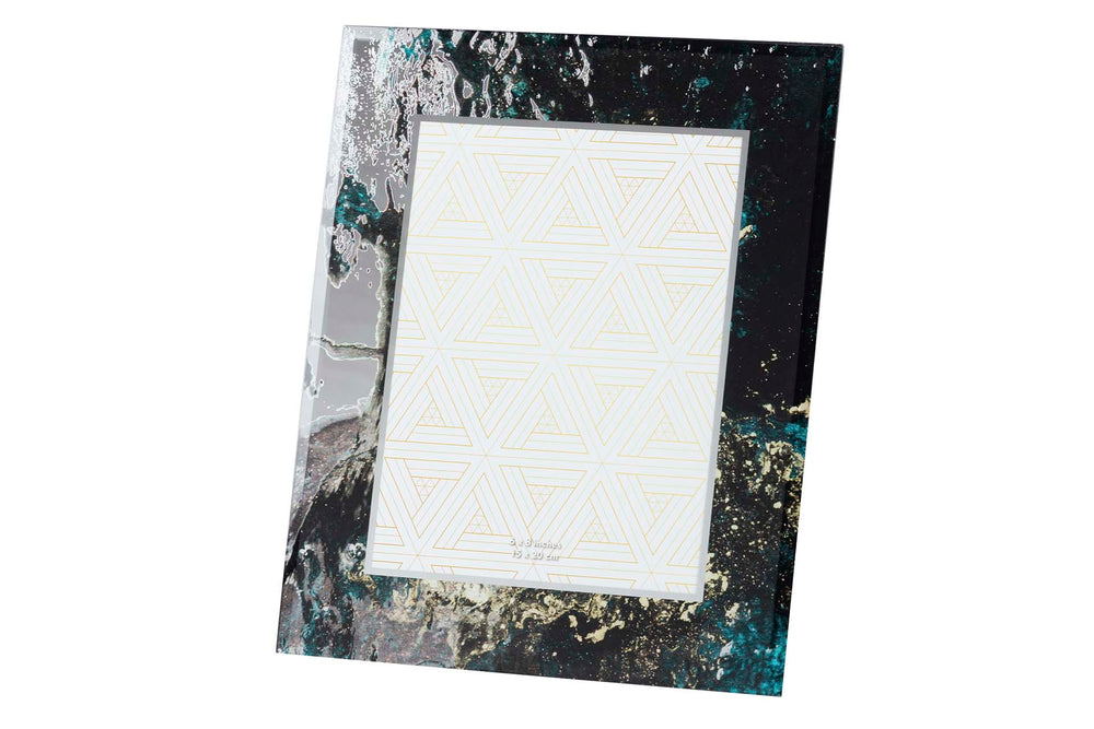 Este portafotos de cristal de impresión negro-dorado de 15x20 cm es perfecto para mostrar tus fotografías favoritas con elegancia y estilo. El vidrio transparente protege tus imágenes mientras que el marco negro-dorado agrega un toque sofisticado a cualquier espacio. Disfruta de tus recuerdos enmarcados con este producto de calidad.
