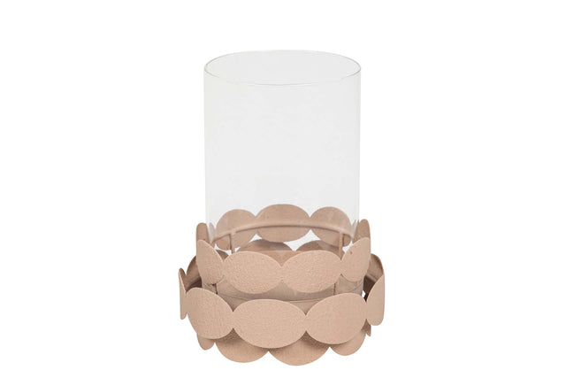 PORTAVELAS METAL BEIGE 14x14x19 CM