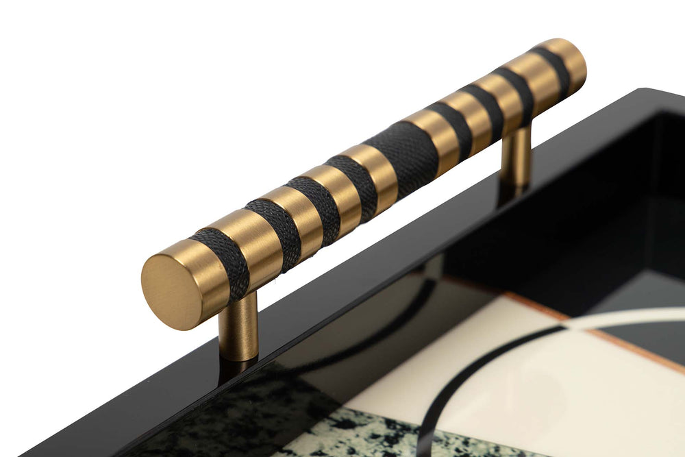 BANDEJA ABSTRACTA PIEL METAL LACADO 45x33x9 CM