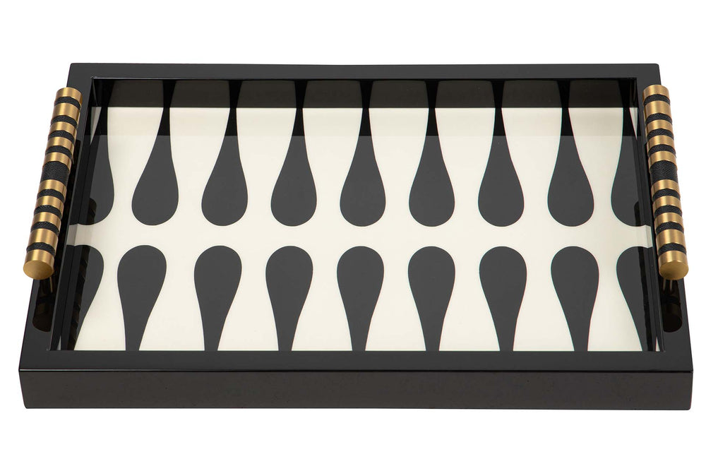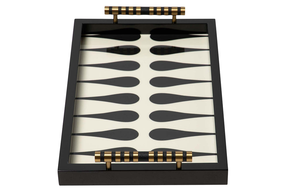 BANDEJA GEOMETRICA PIEL METAL LACADO 45x33x9 CM