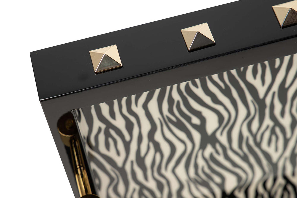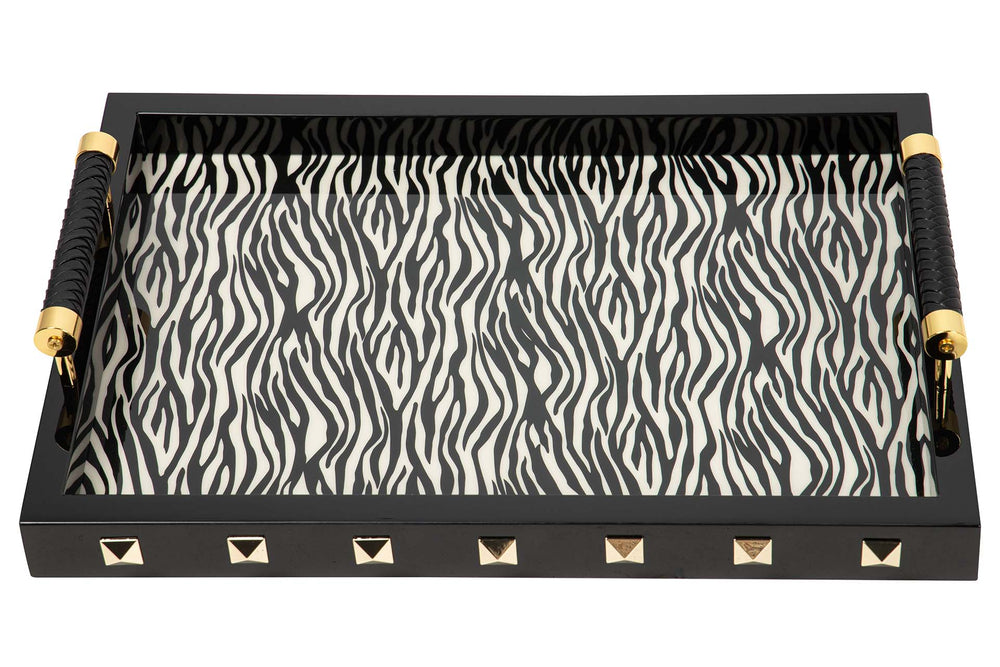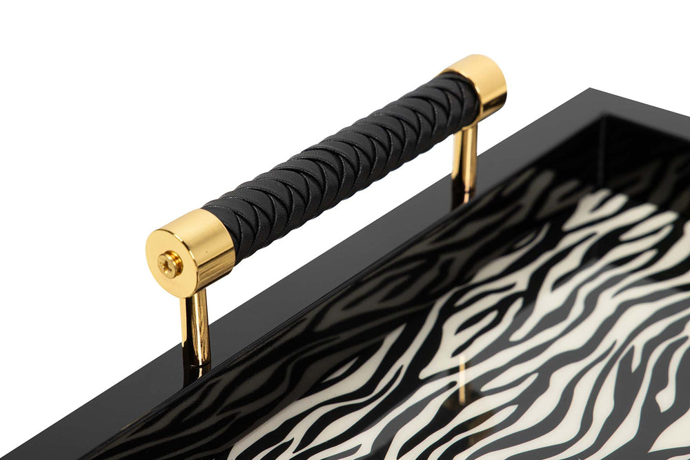 BANDEJA MDF PIEL BLANCO NEGRO 45x33x9 CM