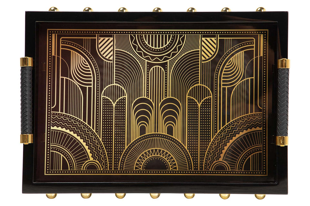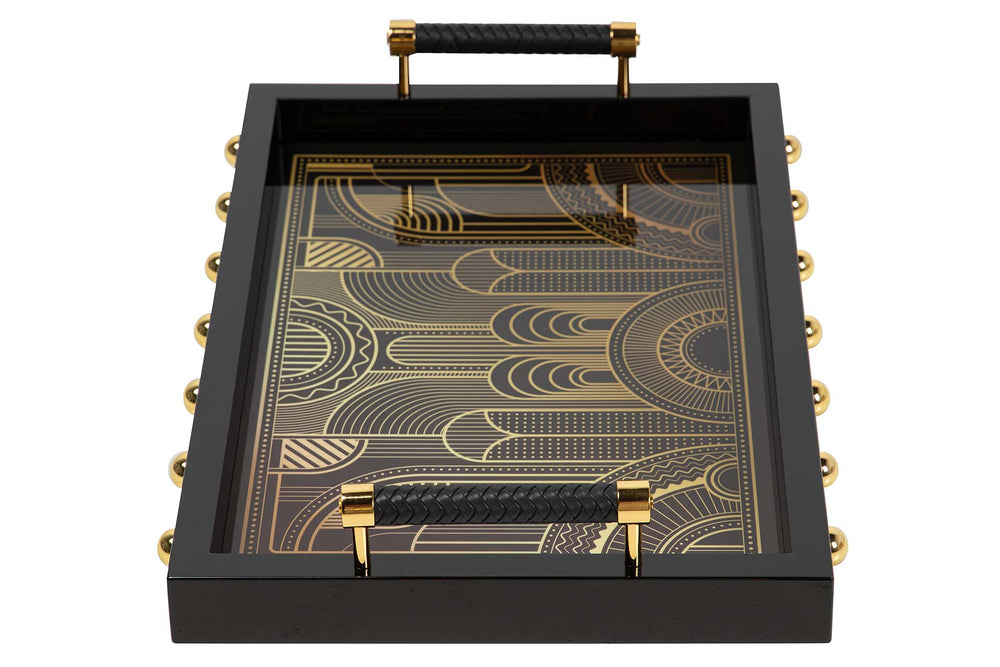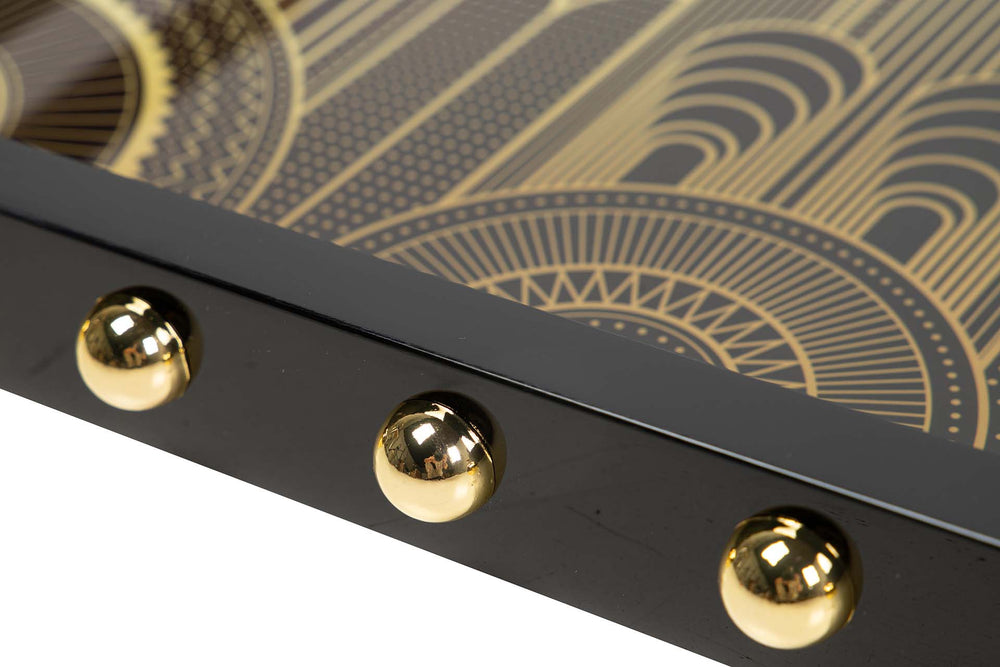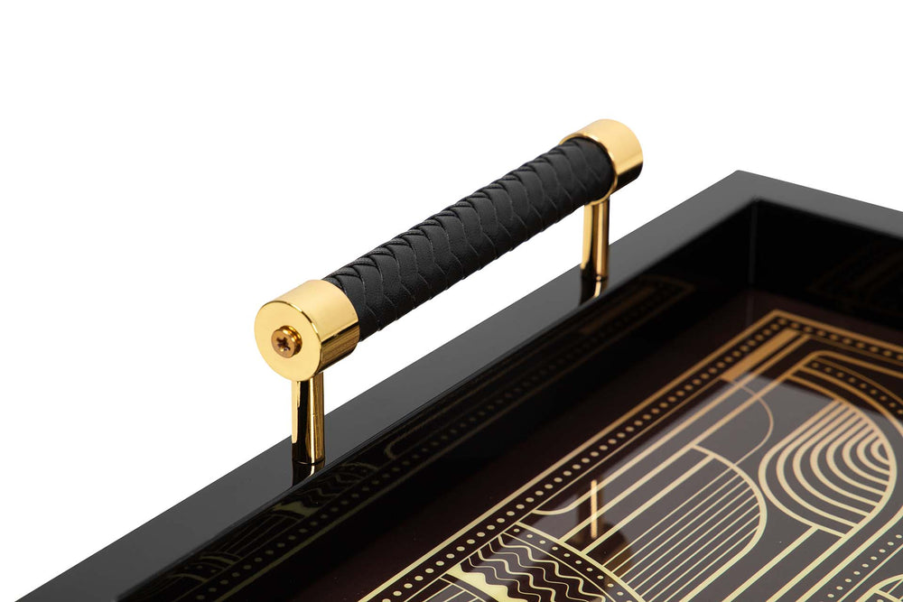 BANDEJA MDF PIEL NEGRO DORADO 45x33x9 CM