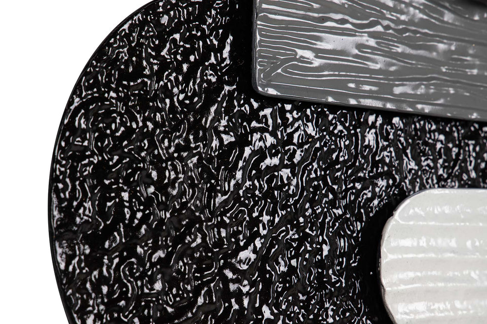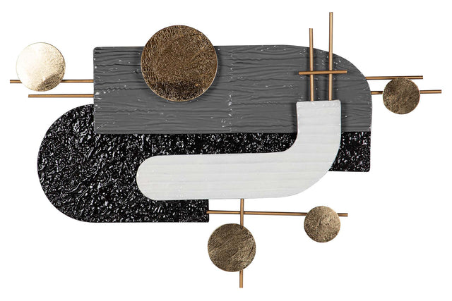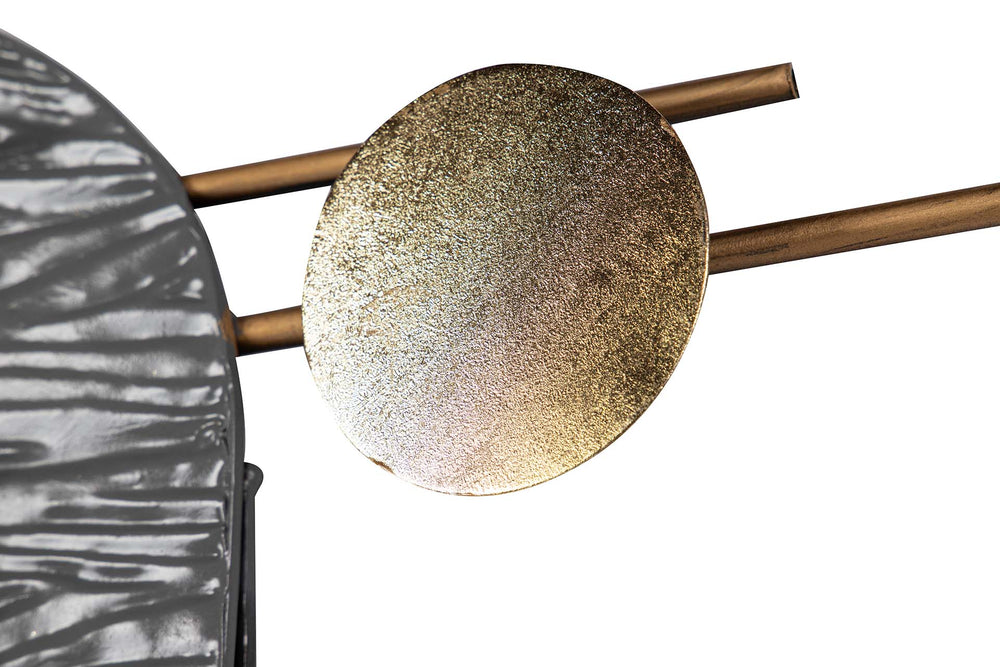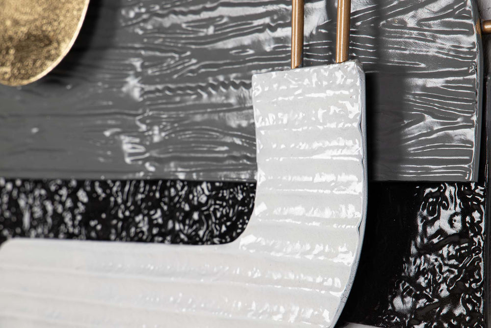 Diese exklusive Schwarz -Grau -Metall -Wandverzierung mit seinen Abmessungen von 91 x 5x50 cm ist ein Kunstwerk selbst. Fügen Sie Ihrem Raum einen Hauch von Eleganz und Raffinesse mit seinem exklusiven Design und seinen hochwertigen Materialien hinzu. Es fällt in der Menge mit dieser beeindruckenden Wandverzierung auf.