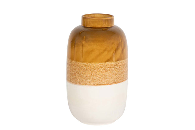 Este florero de cerámica en tonos beige y amarillo, con medidas de 20x20x34 cm, combina elegancia y calidez en un diseño contemporáneo. Su acabado delicado y la armonía de colores aportan un toque sofisticado que realza cualquier arreglo floral, integrándose con estilo en espacios modernos y refinados. Una pieza decorativa que aporta personalidad y distinción.