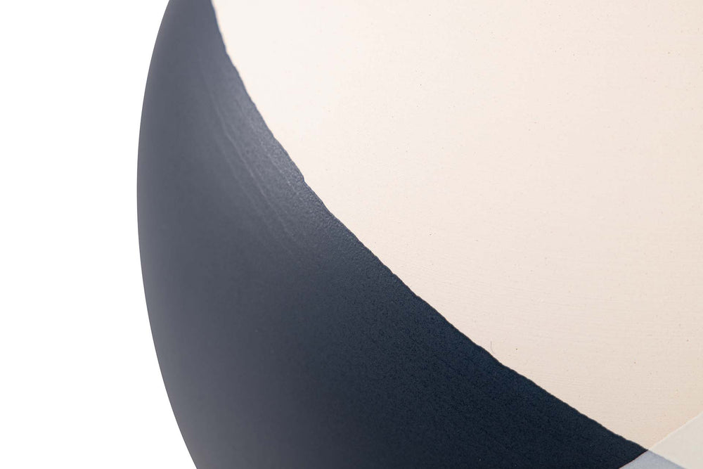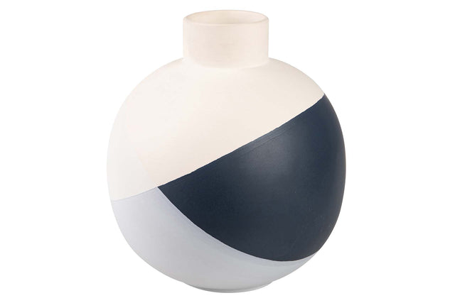 Este florero de cerámica en tonos blanco y azul, con medidas de 24x24x26 cm, combina un diseño elegante y contemporáneo. Su acabado pulido y la armoniosa mezcla de colores aportan sofisticación y frescura, ideal para realzar cualquier arreglo floral y complementar espacios con estilo moderno y distinguido. Una pieza decorativa que aporta carácter y serenidad a tu hogar.
