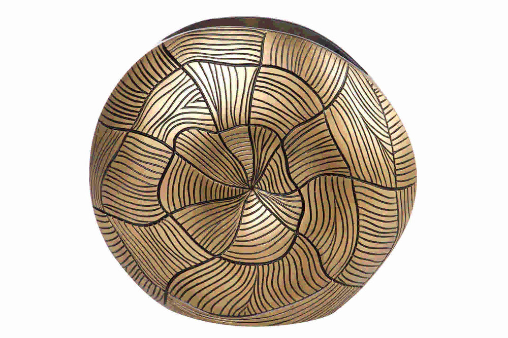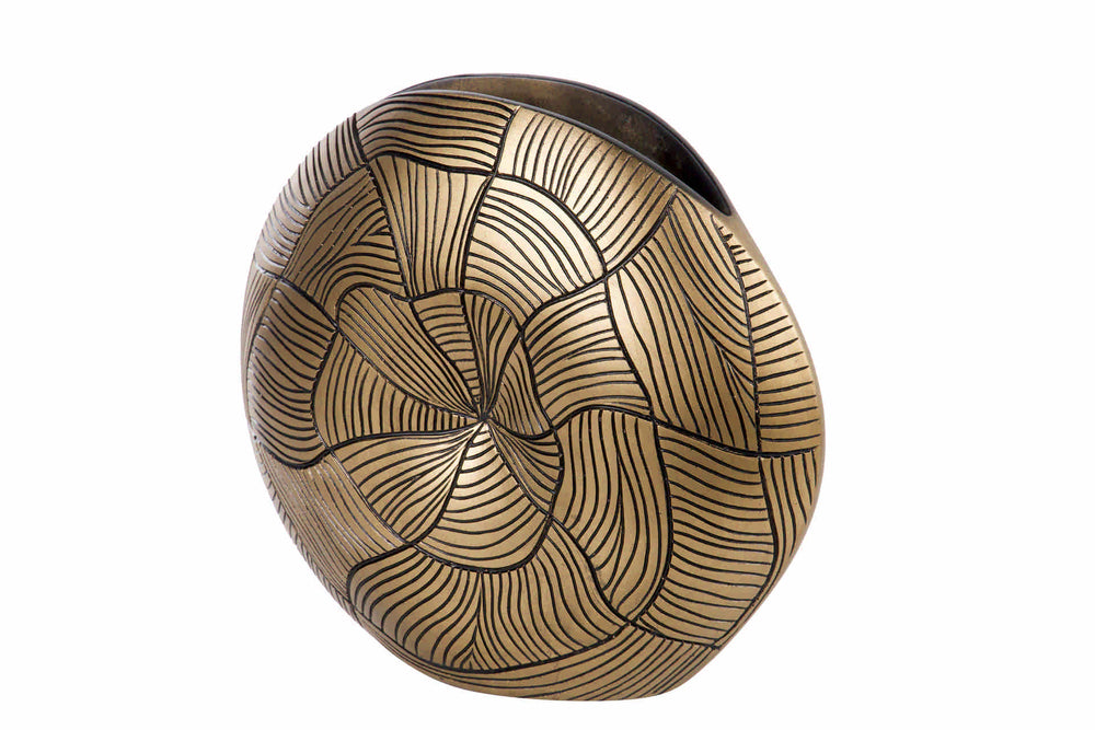 Ce vase en résine dorée est une pièce élégante et exclusive pour décorer votre maison. Son design luxueux vous transportera dans le monde de la mode et de l'art, et sa taille vous permet de porter de grands arrangements floraux dans n'importe quel espace. Un ajout essentiel à votre collection de décoration de luxe.