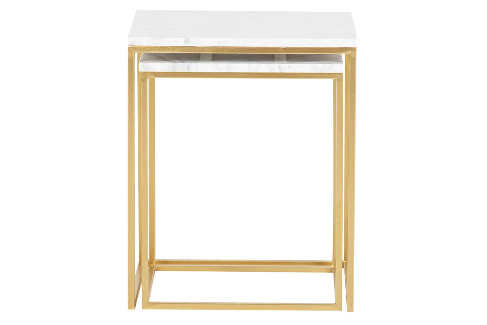 SET 2 MESAS NIDO METAL MARMOL 45x38x55 40x33x50 CM