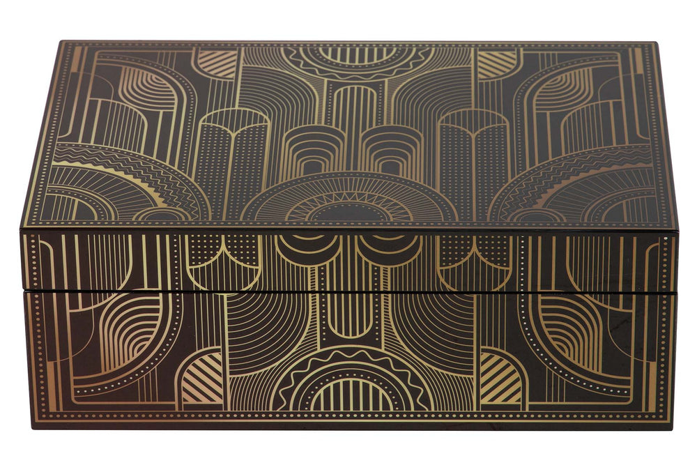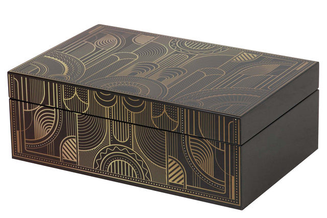 CAJA MDF PIEL NEGRO DORADO 28x18x10 CM