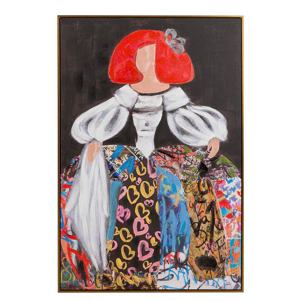 Este cuadro Menina, con dimensiones de 80x4x120 cm y un 80% pintado a mano, combina técnica artesanal con un diseño elegante y detallado. Su representación sofisticada aporta un toque artístico y refinado, ideal para realzar cualquier espacio con una pieza que fusiona tradición y estilo contemporáneo.
